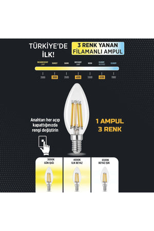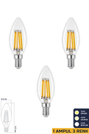 3 Renkli Filament Rustik LED Ampul 6W E14 C35 3'lü ERD-260