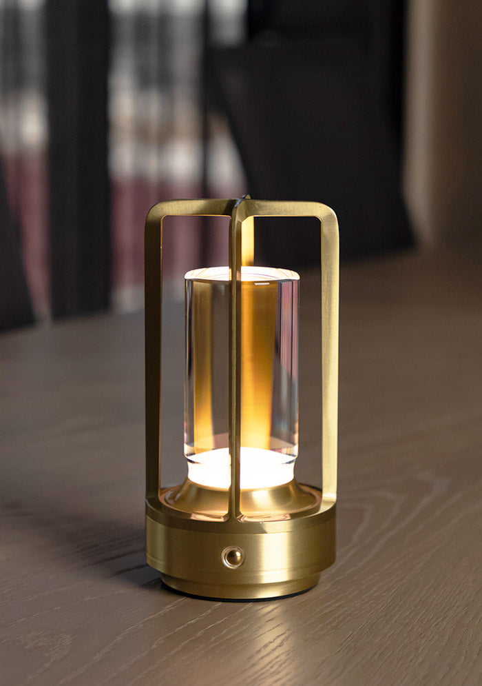 CLARA DİMMERLİ ŞARJLI KRİSTAL AKRİLİK ALTIN MASA LAMBASI