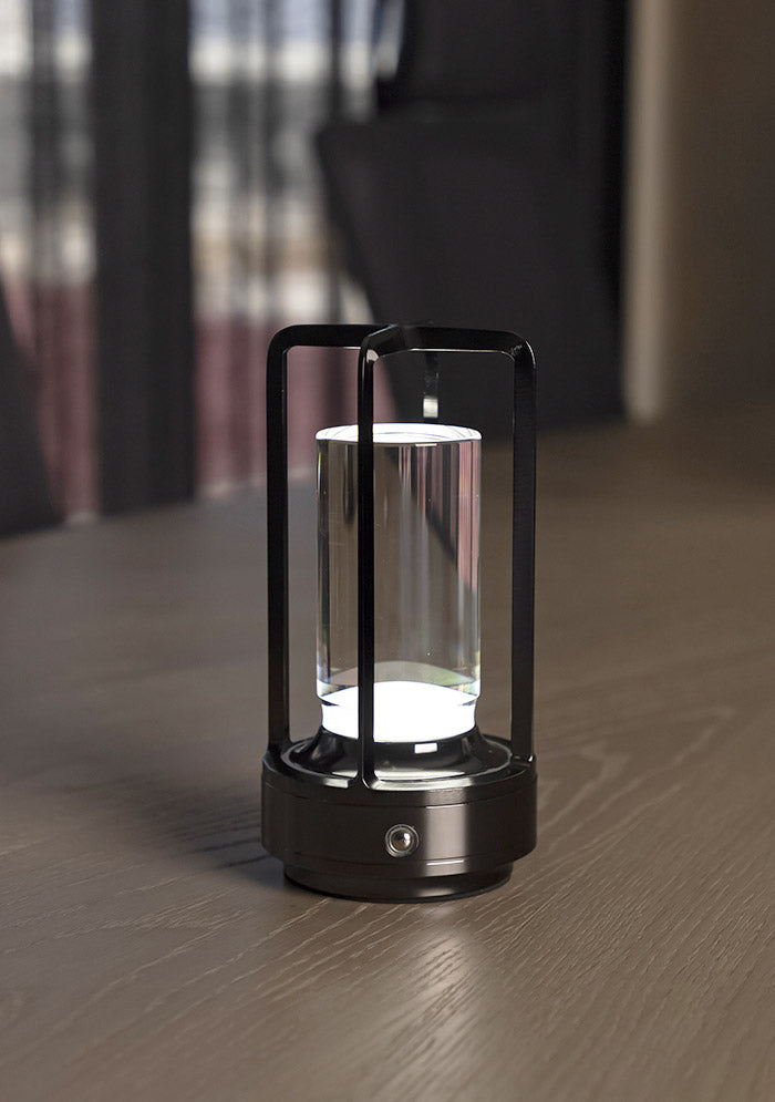 CLARA DİMMERLİ ŞARJLI KRİSTAL AKRİLİK SİYAH MASA LAMBASI