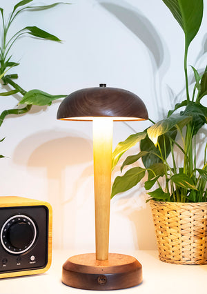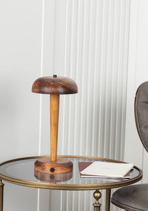 PORTOBELLO | Şarjlı 3 Renkli Dokunmatik Ahşap Mantar Masa Lambası | Dokunmatik Dimmer Özellikli